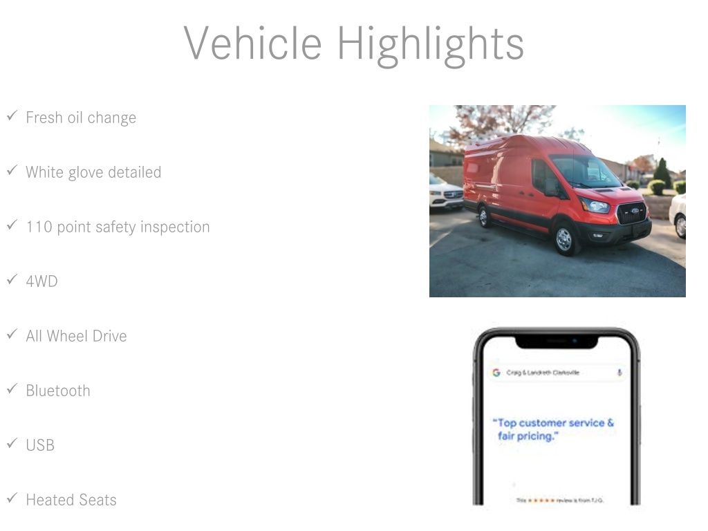 WE ARE THE LARGEST LUXURY PRE-OWNED DEALER IN KENTUCKIANA WITH 49 YEARS OF EXPERIENCE, A+ BBB RATING! THIS FORD TRANSIT-250 EXTENDED IS CERTIFIED BY CARFAX – 1 OWNER & NO ACCIDENTS! ** AWD/4WD/4X4 ** ONLY 15K MILES ** FLAWLESS CONDITION INSIDE AND OUT ** LOT'S OF STORAGE ON THE INSIDE ** IMPECCABLE SERVICE RECORDS ** GREAT PREVIOUS OWNER ** AND EVERY VEHICLE LOOKS GREAT IN PICTURES... BUT ON A SCALE OF 1-10, MOST DEALERS SELL A 5 OR 6. WE ONLY SELL A 9 OR 10!! ** THIS VEHICLE IS LIKE NEW AND NEEDS ABSOLUTELY NOTHING. WHY PAY MORE WHEN YOU CAN'T TELL THE DIFFERENCE? WHY BUY NEW WHEN YOU CAN BUY SUPERIOR QUALITY FOR LESS?! WE'RE KNOWN IN KENTUCKIANA FOR CLEAN, LIKE-NEW VEHICLES INSIDE AND OUT, AND OUR GOOGLE REVIEWS PROVE IT. STOP SHOPPING AND START DRIVING TODAY! OUR INTERNET SPECIAL IS PRICED TO MOVE QUICKLY, SO DON'T WAIT! ANY QUESTIONS? CONTACT JIMMY SMITH OR RICHARD SPAN AT 812-280-8018.THE Ford Transit-250 HAS BEEN INSPECTED BY COOPER AUTOMOTIVE WITH A THOROUGH 110-POINT INSPECTION TO ENSURE TOP-NOTCH QUALITY. OUR VEHICLES ARE THE CLEANEST IN KENTUCKIANA—LET US SHOW YOU THE DIFFERENCE!